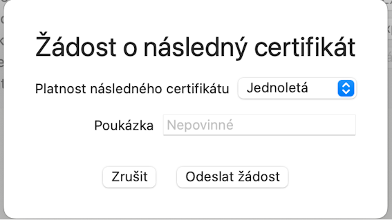 V detailu žádosti o následný certifikát je možné vybrat dobu platnosti certifikátu, případně přidat slevovou poukázku.